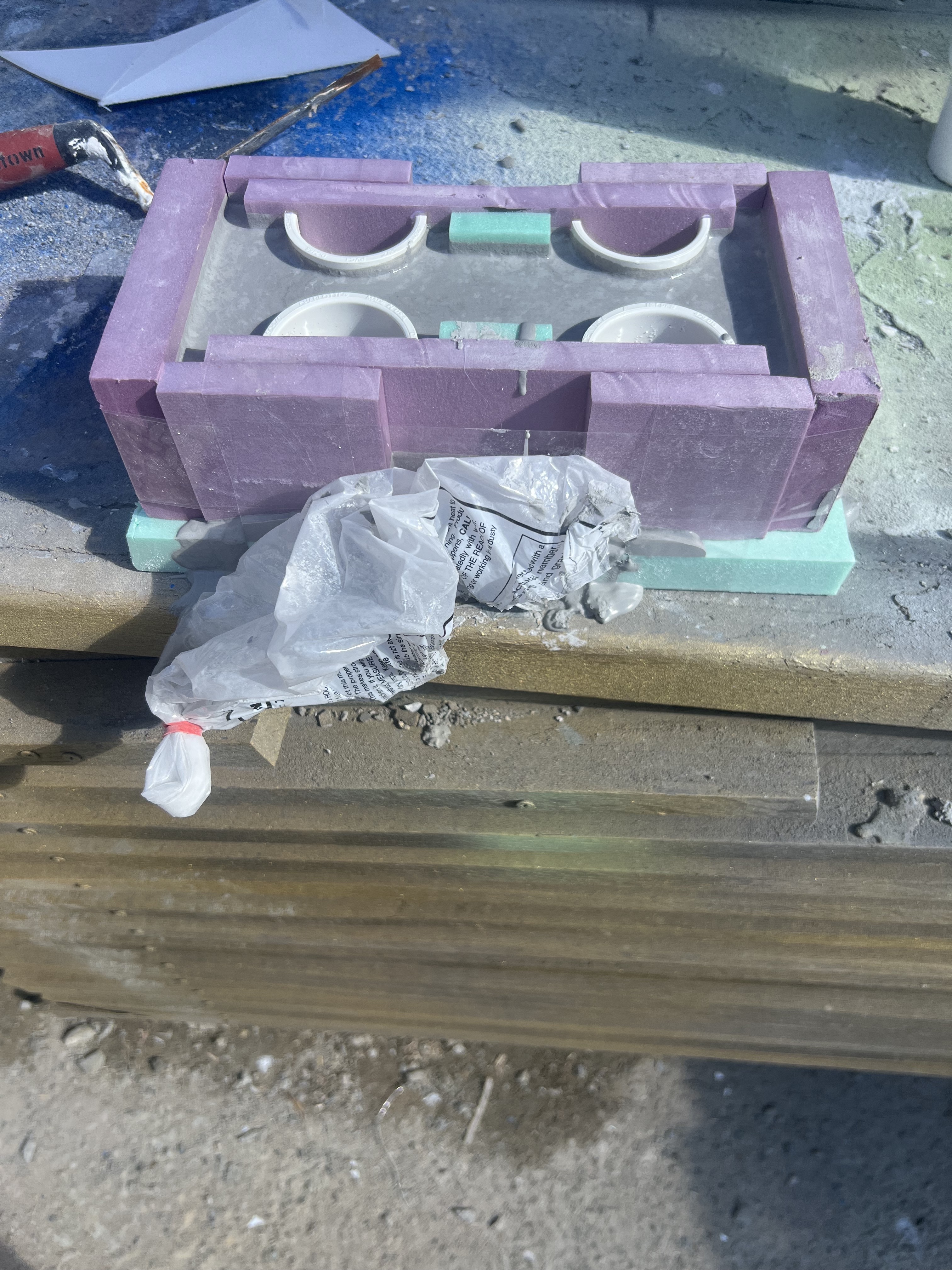 After the largely digital exploration of the bricks form, I began prototyping a final design for the brick using woodworking and casting. Although the bricks in Tanzania would be cast with clay, I used concrete in order to create more prototypes at once while keeping in mind the process of a typical brick mason in Tanzania.