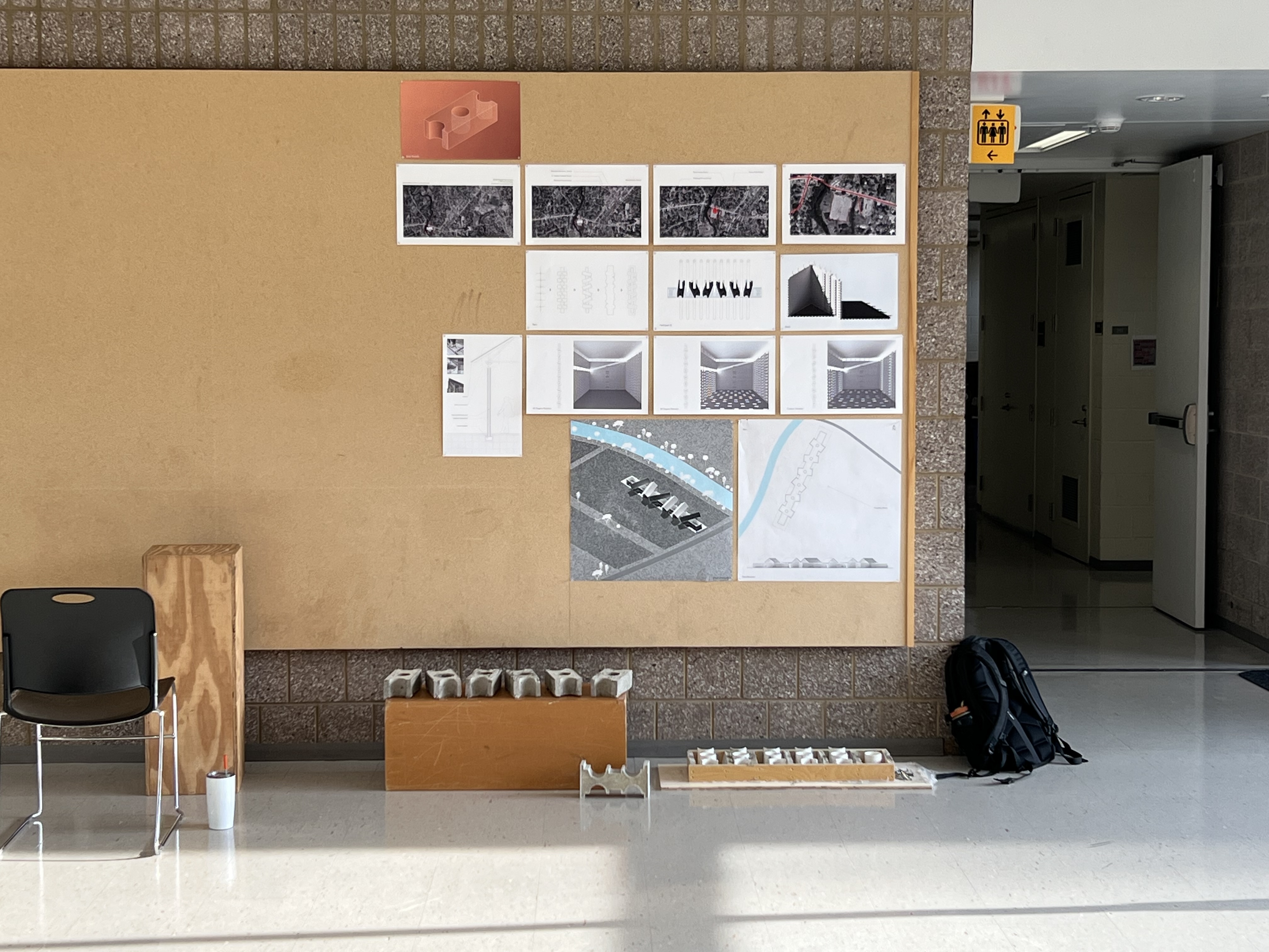 The school I am proposing uses a single designed brick module to be applicable throughout the building, while in this specific iteration, the building’s form responds to the movement of the brick itself when in construction. The concept of this brick was influenced by the idea of affordable and easy construction in low-tech building solutions. First researching Compressed Earth Blocks (C.E.B’s) and the interlocking component that eliminated the need for mortar, then designing a form that would allow a brick to become flexible during construction. The brick design is one with a hole in the center to allow for bamboo structure to pass through the wall cavity, with semi circles on either side of the brick so that it could continue a running bond.